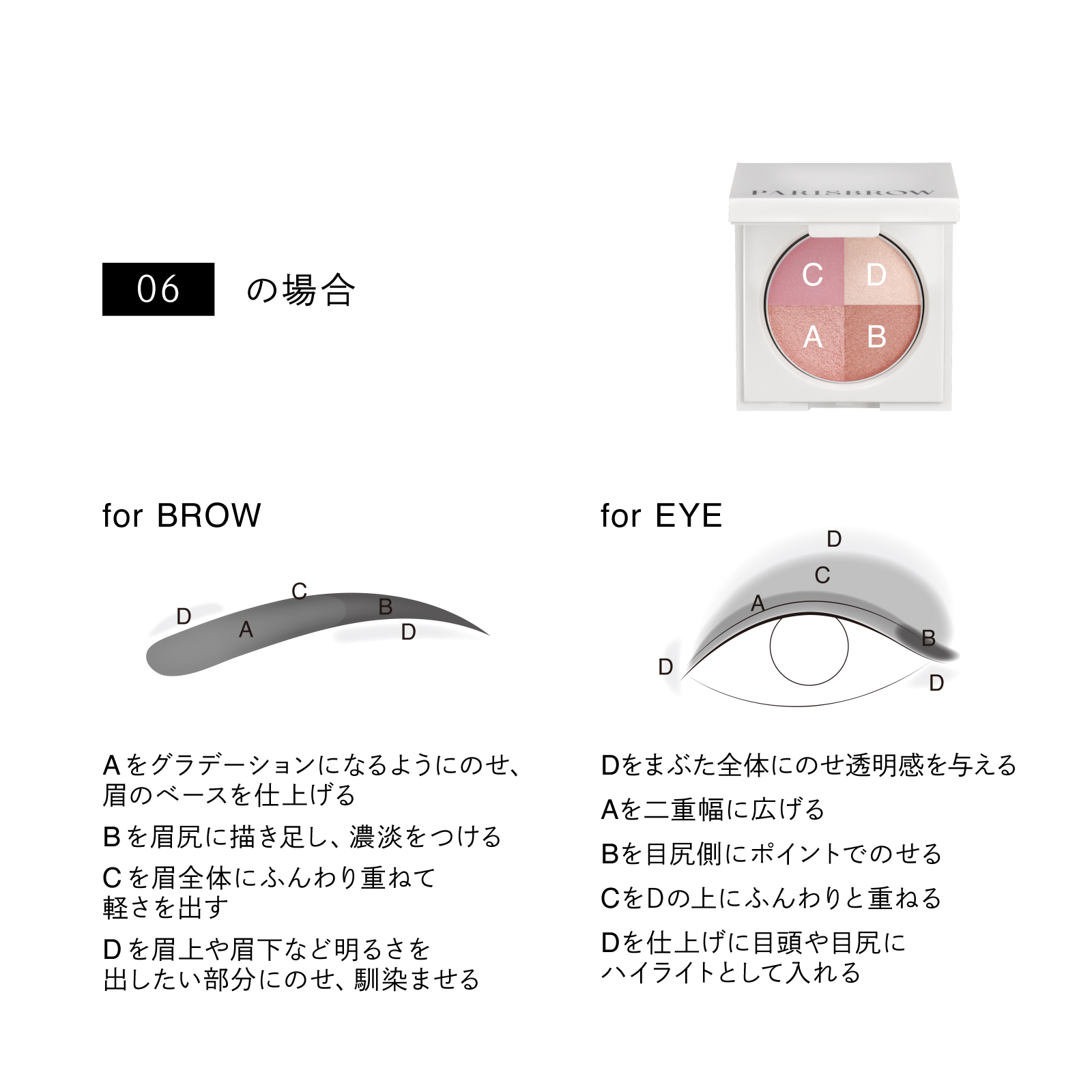 アイブロウパウダーとしてだけでなく、アイシャドウ、シェーディングとしても使用でき、 好みや気分に合わせてなりたい目元を叶えます。