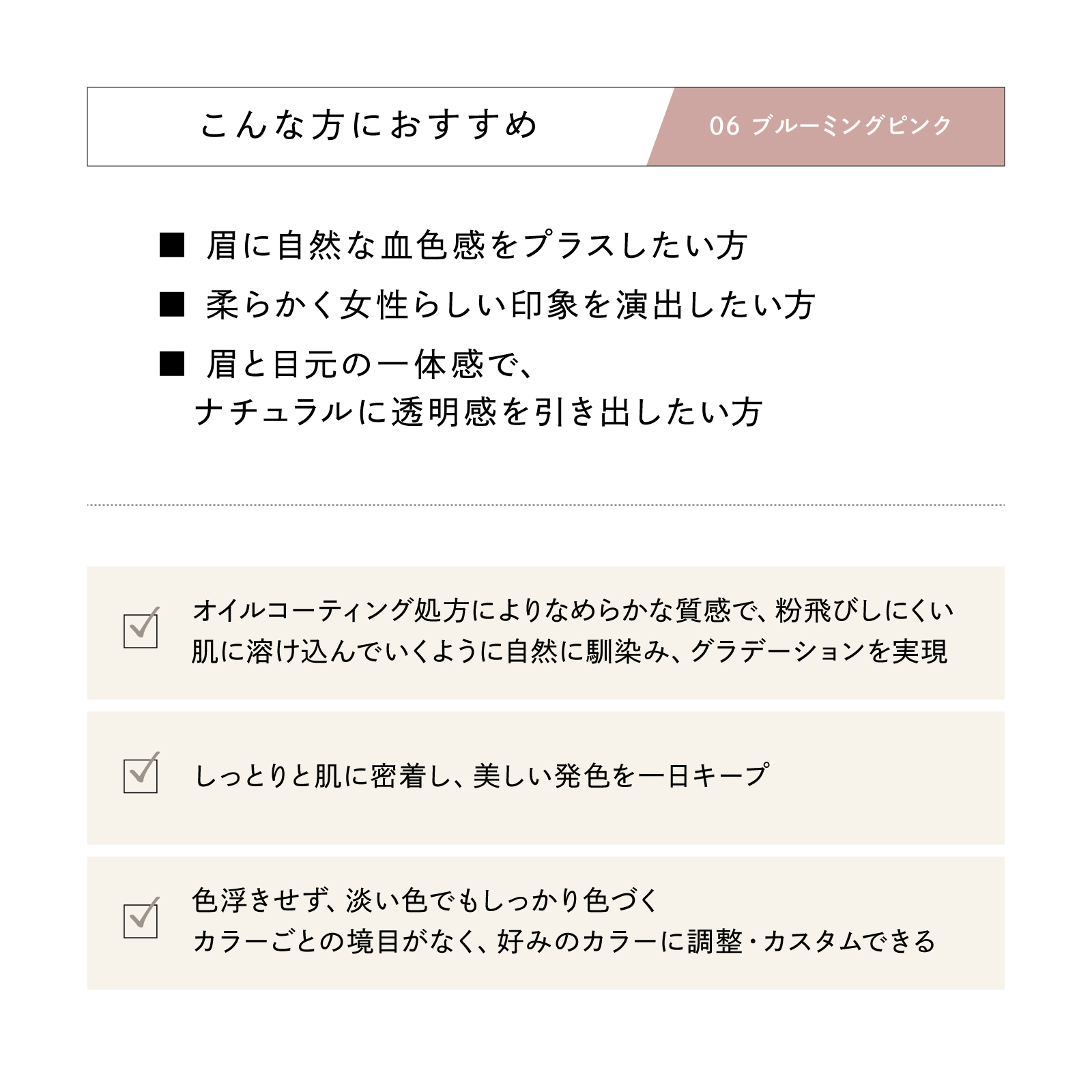 ツリー型ブラシで肌につきにくく、毛流れを整えながら印象チェンジが叶う。
