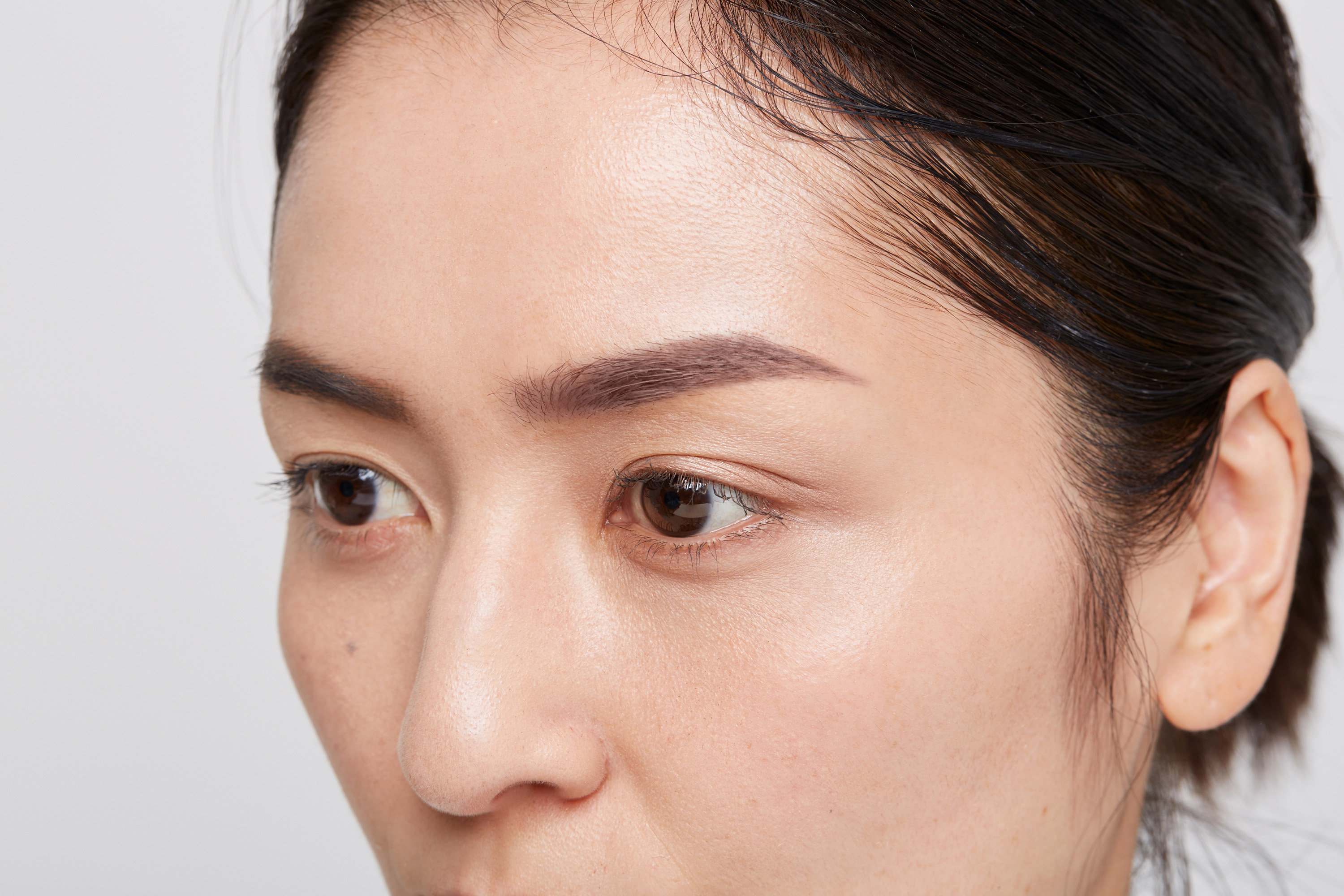 毛流れに逆らい、眉尻から眉頭に向けて眉毛の裏に塗布します。