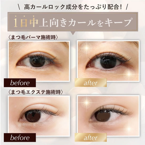 カールロック成分※1をたっぷり配合し、まつ毛エクステのバラつきやヘタりを整え、塗るたびに美しいカールが蘇る。