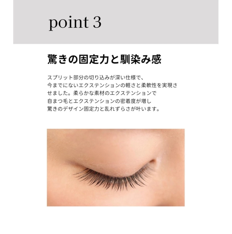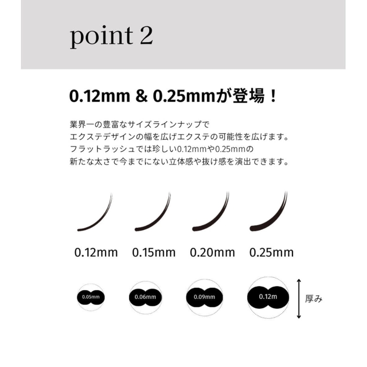 豊富なサイズ展開で、エクステデザインの幅を大きく広げるフラットラッシュ。
