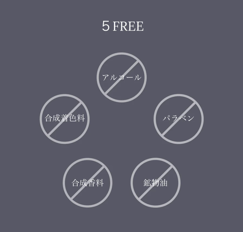 ・アルコール、合成着色料、パラベン、合成香料、鉱物油フリー